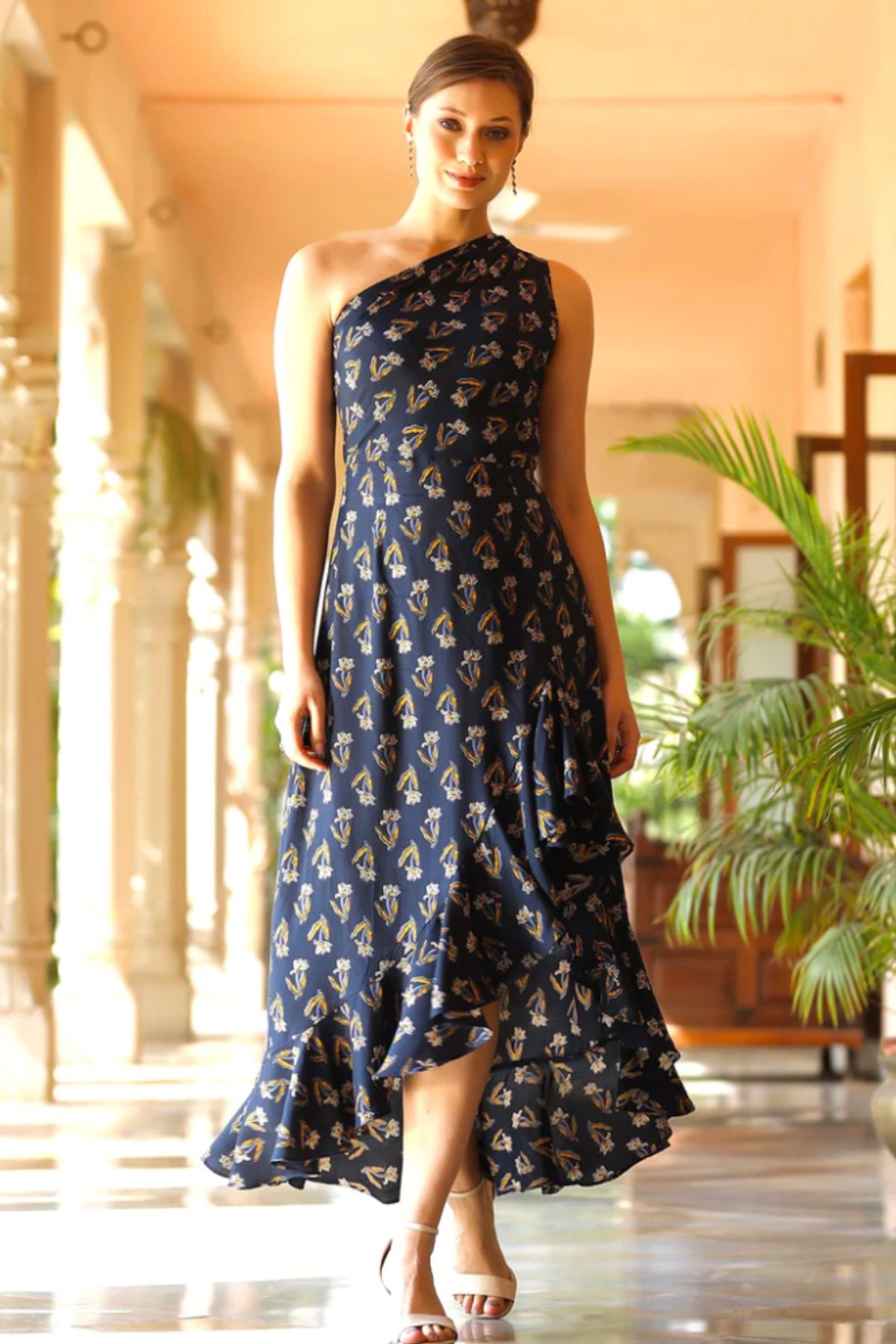 Dahlia is a muslin silk asymmetrical high low dress. It is a versatile piece which can be worn out to a wedding, gala or just day at the beach!