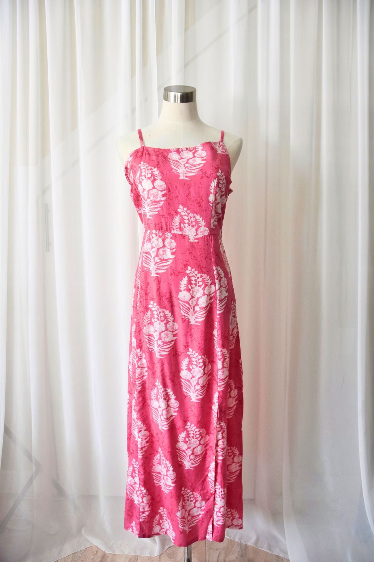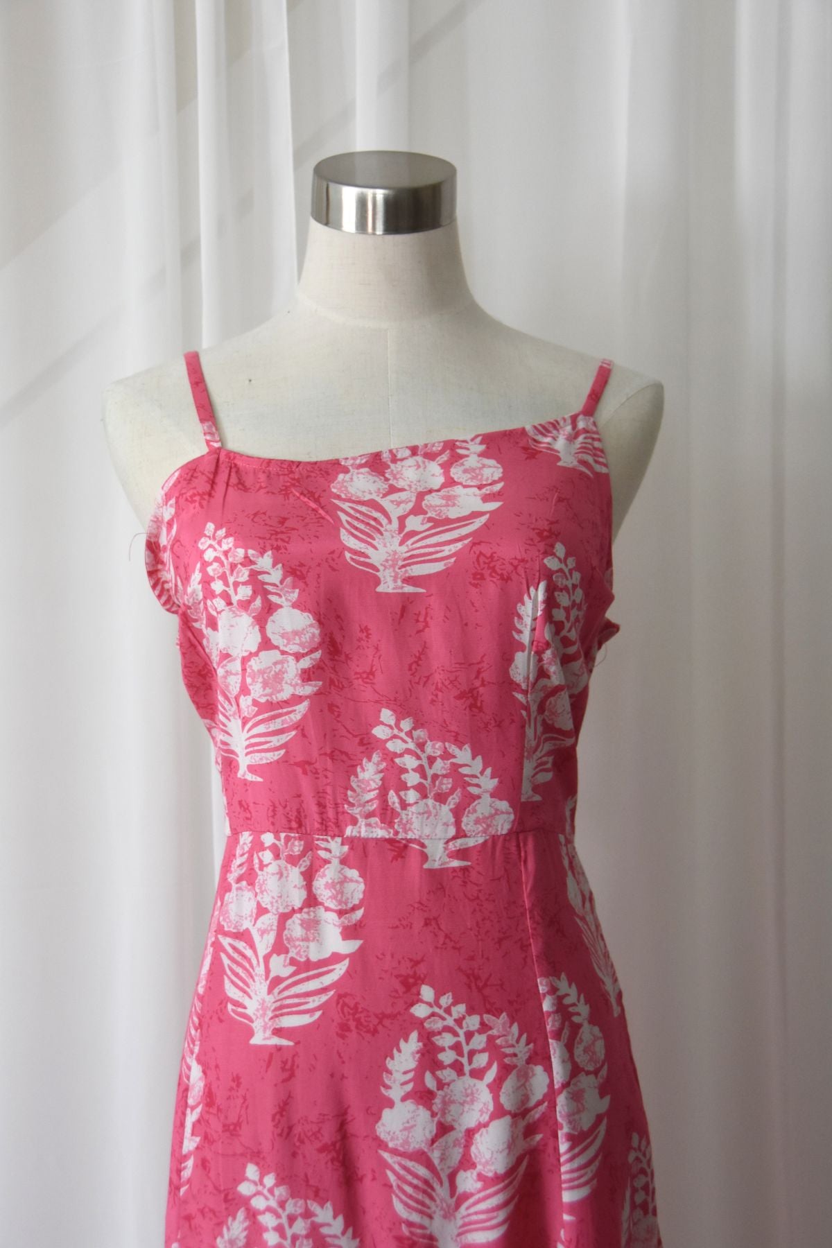 Rani is a muslin silk slip dress made using hand-block printing and organic, natural dyes. It has adjustable spagetti straps and a slit
