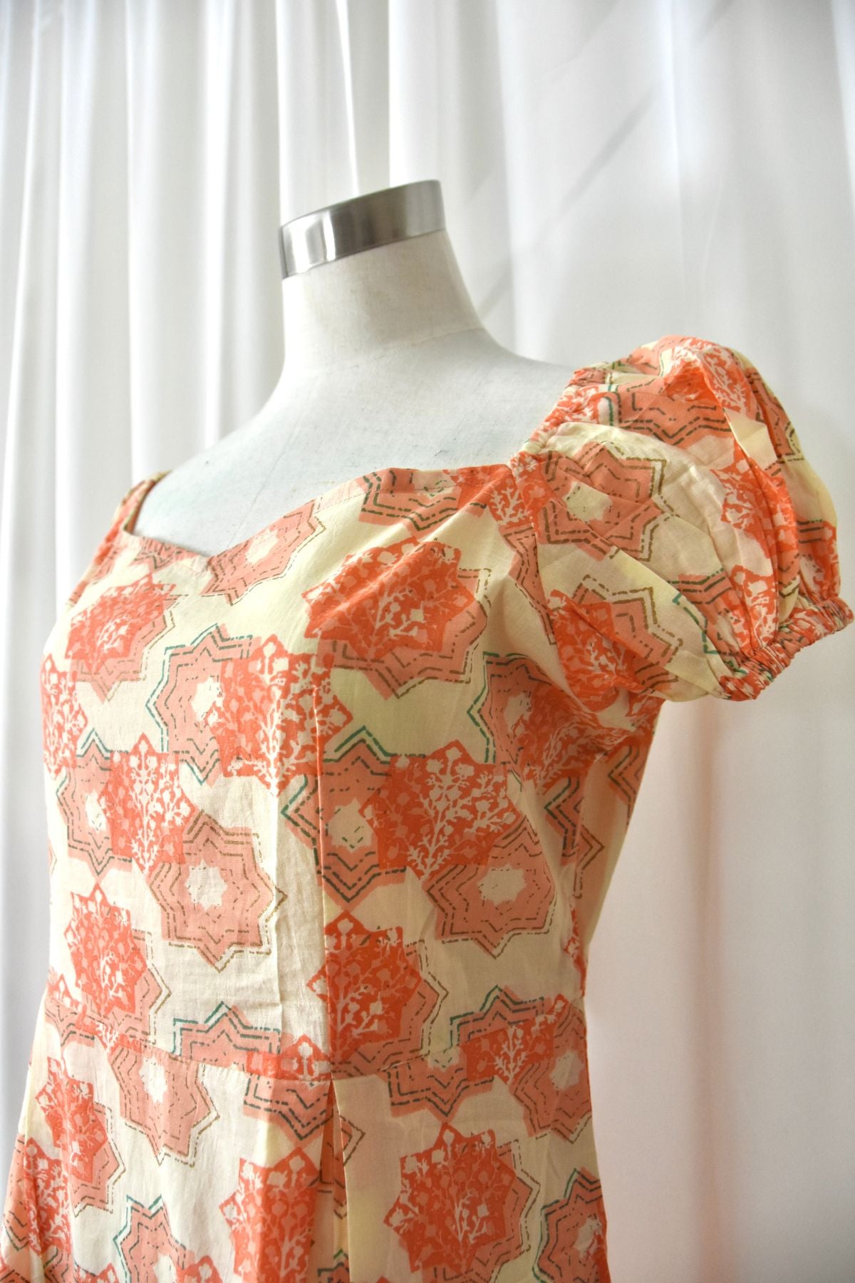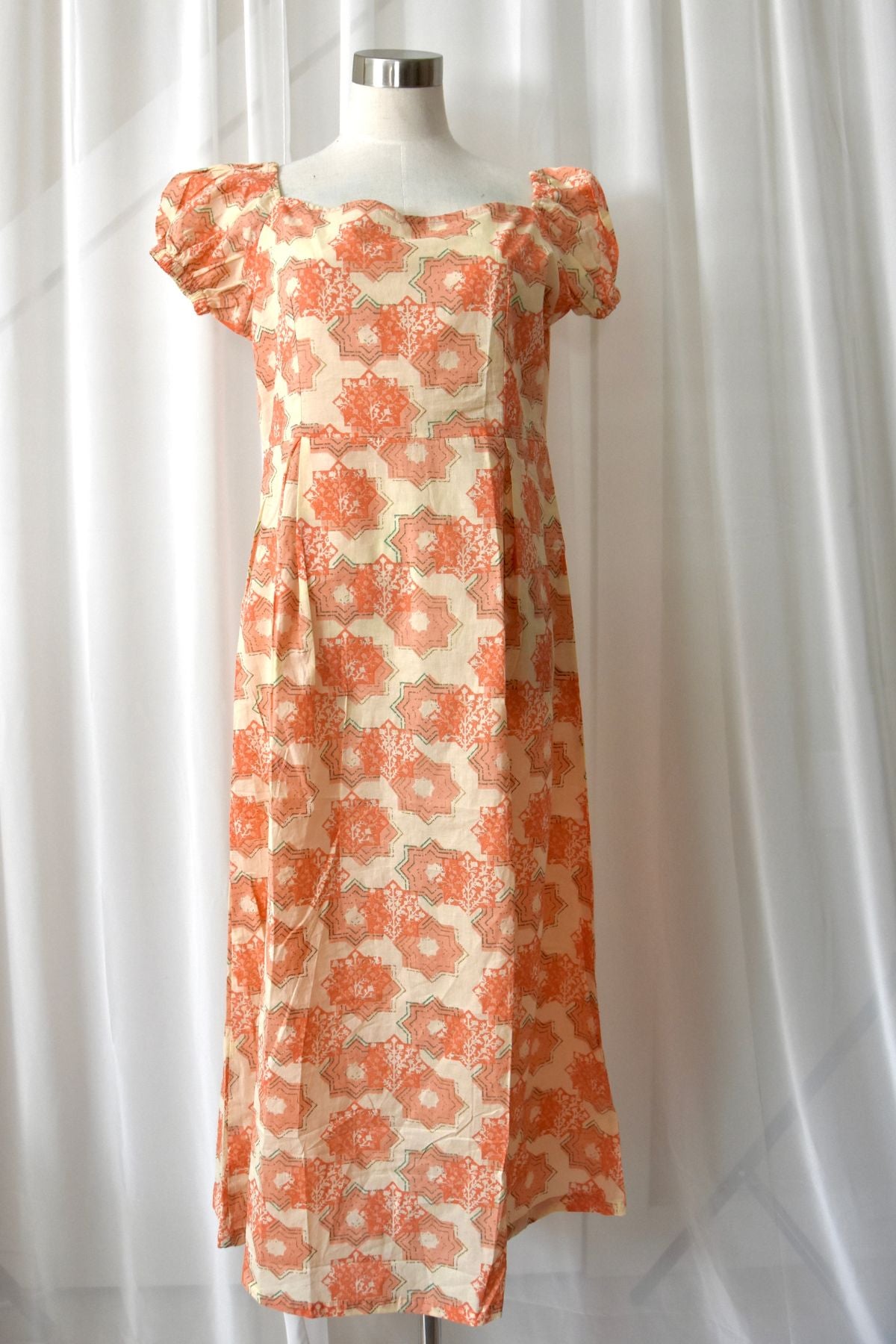 Starry is a cotton hand-block printed peice made with natural and organic dyes. It features a square neck with puffed balloon sleeves and a slit making it a perfect wear for the summer!