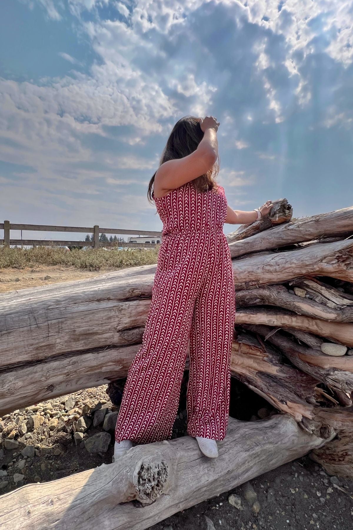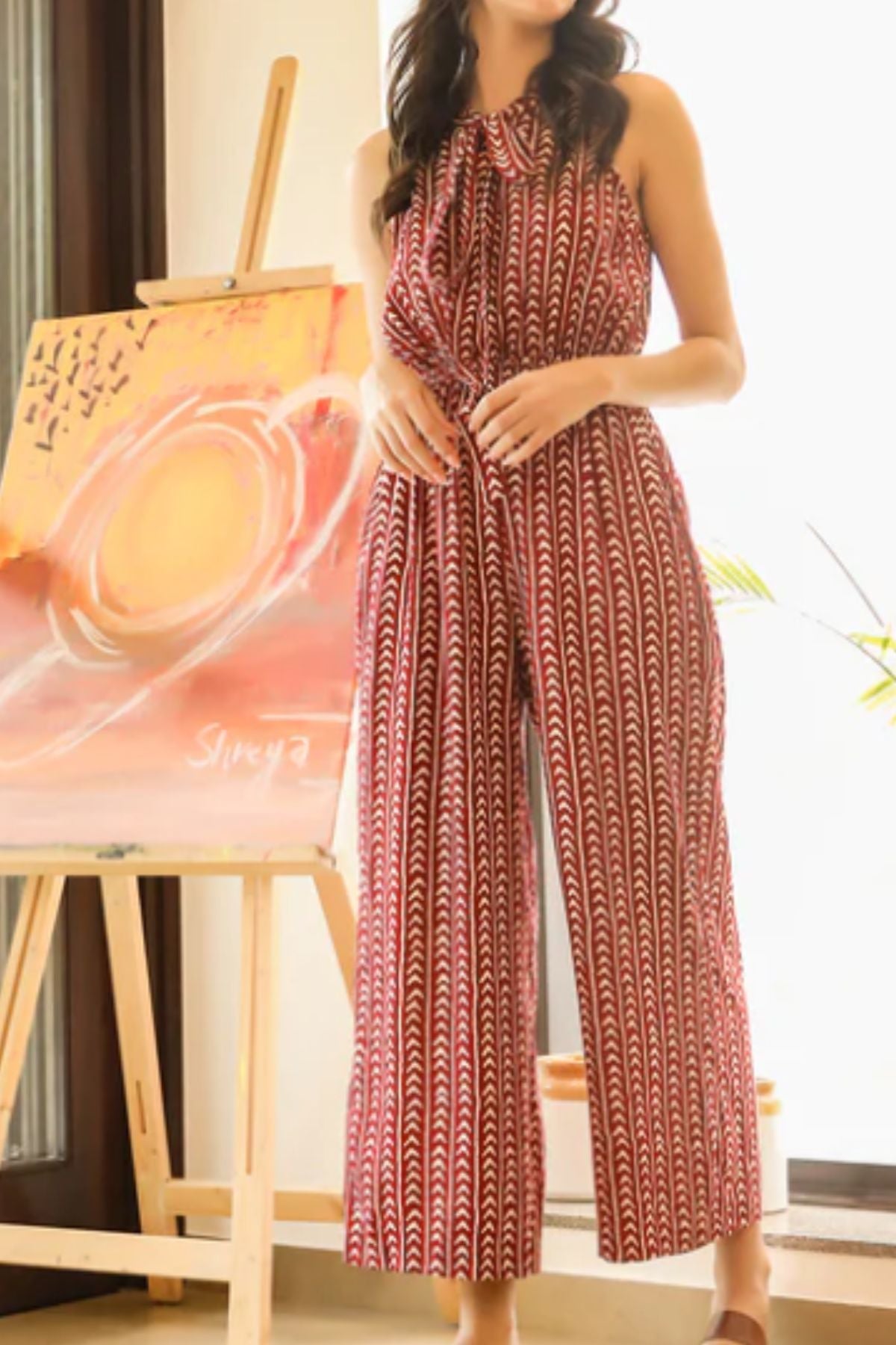 Muslin Silk Jumpsuit featuring a neck tie which can be tied in the front or the back to give two different looks!